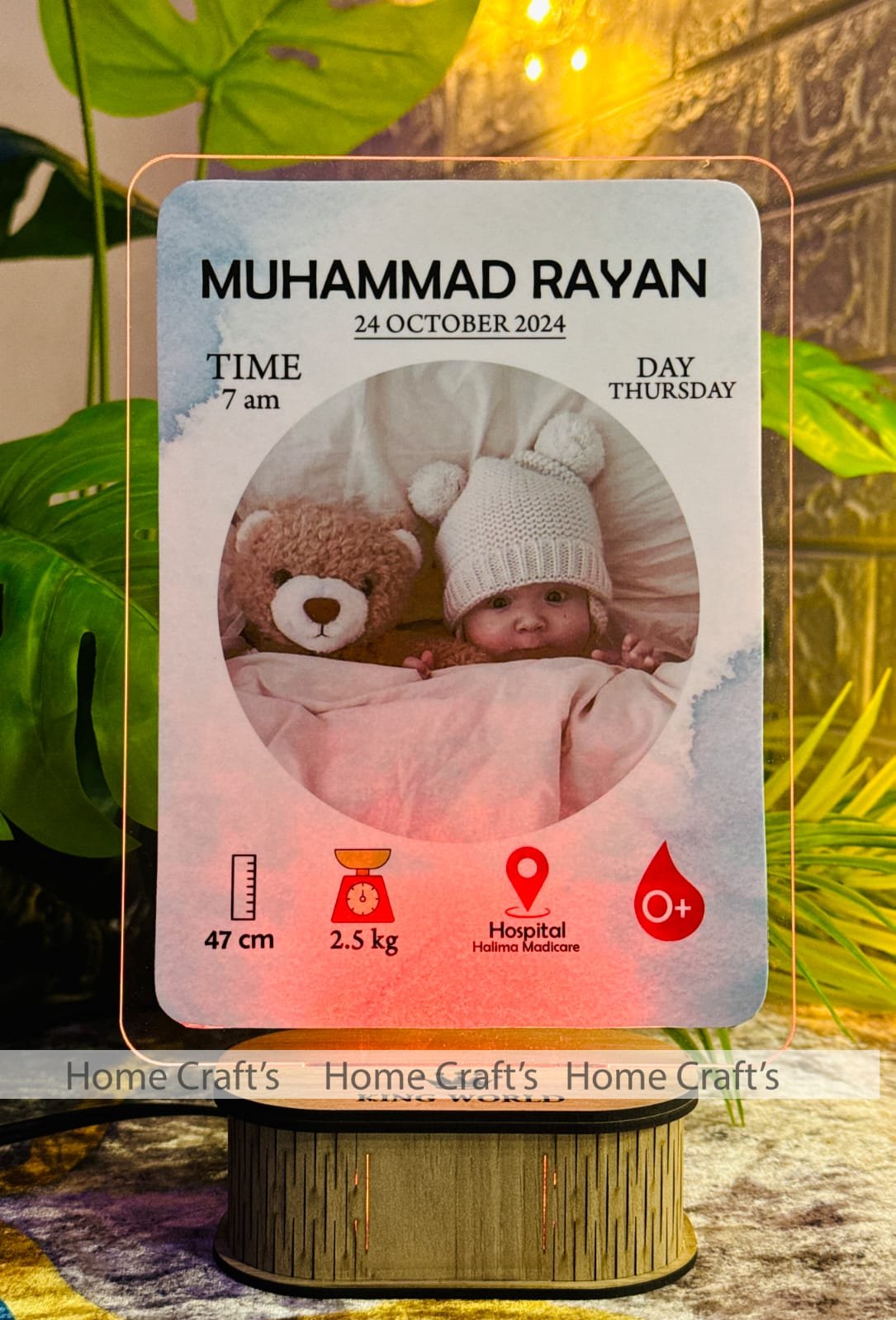 Constructed with precision, our Custom 3D LED Lamp is made from premium 3mm acrylic, offering exceptional durability and clarity for intricate designs. The base is crafted from solid MDF wood, ensuring stability and a warm aesthetic that complements the glowing light seamlessly. The combination of high-quality materials guarantees a product that not only looks great but also lasts long.